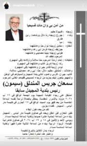 غيّب الموت مُزيّن شعر المشاهير اللبناني سيمون المندلق، وهو كان رئيس بلدية المجيدل سابق.