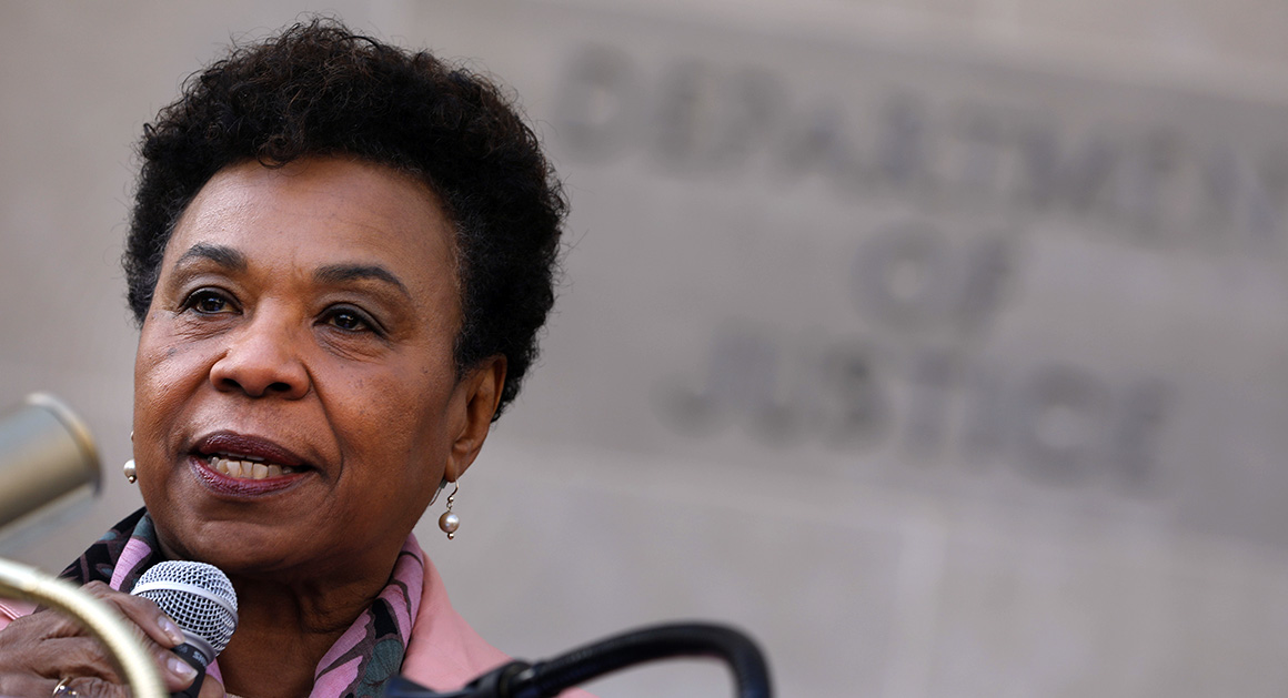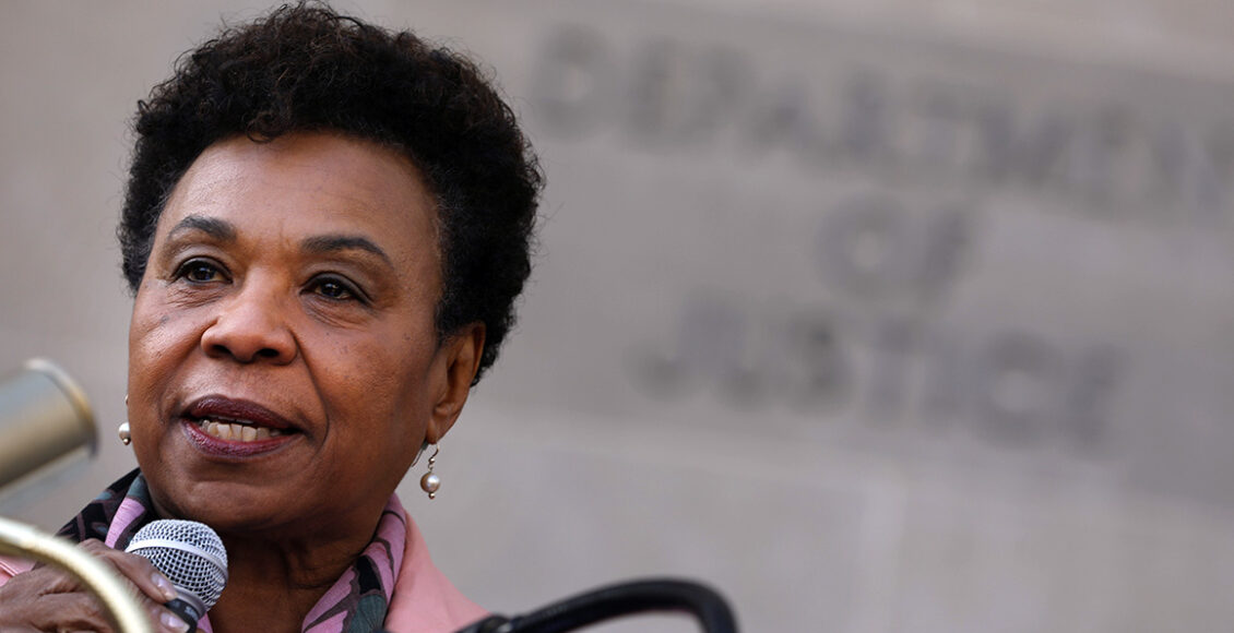 WASHINGTON, DC- MARCH 2: Rep. Barbara Lee (D-CA) speaks during a demonstration outside the Department of Justice to call for the resignation of Attorney General Jeff Sessions March 2, 2017 in Washington, DC. Sessions is under fire for his contact with a Russian Diplomat during the 2016 Presidential Campaign. (Photo by Aaron P. Bernstein/Getty Images)