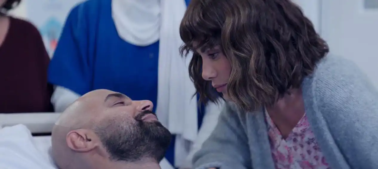 وفي لفتة دافئة، تفاجئ مريم حبيبها بقص شعرها بالشكل الذي طالما أحبّه، رغم رفضها السابق لذلك. تظهر أمامه بابتسامة عريضة تبعث الأمل في نفسه، ليكون هذا المشهد آخر ما يراه قبل دخوله غرفة العمليات، ممزوجًا بمشاعر الحب والقلق والخوف من الفقد.