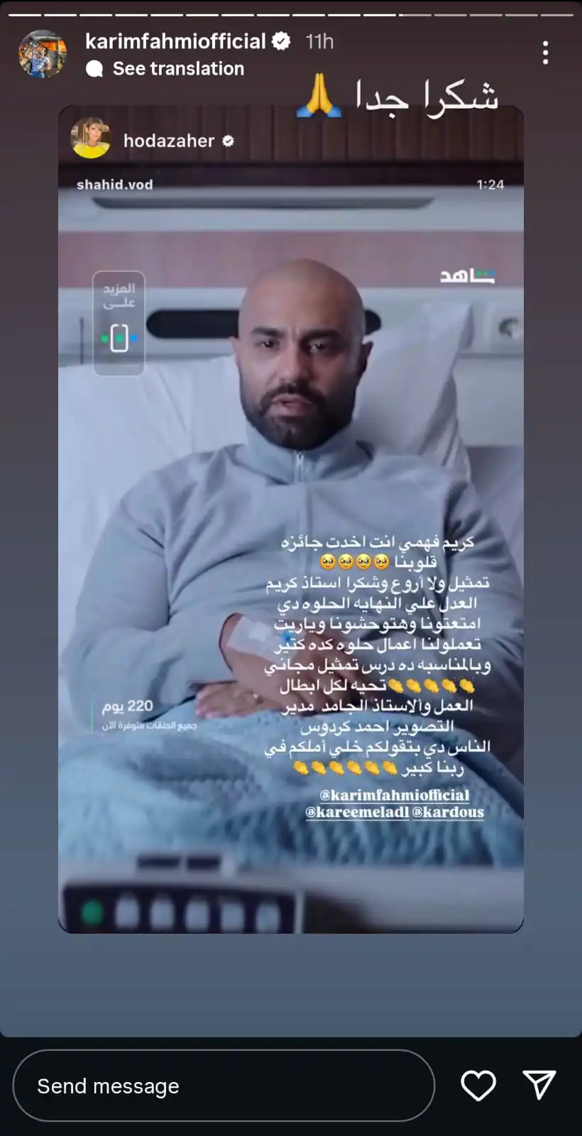تسبب ظهور مفاجئ للفنان كريم فهمي في شخصية رجل كبير السن، مصحوبًا بأنغام أغنية “طبع الحياة” للنجم عمرو دياب، في إحداث تفاعل واسع على السوشال ميديا. حيث أطلق كريم جملة مؤثرة: “اليأس بيجيب موت والأمل بيدينا حياة وانت اللي بتختار النهاية.”