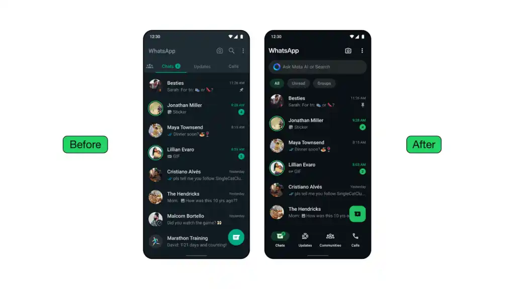 وأضاف “واتساب” شريط تنقّل سفليّ على نظام “أندرويد” للتسهيل على المستخدمين العثور على ما يبحثون عنه بسرعة.