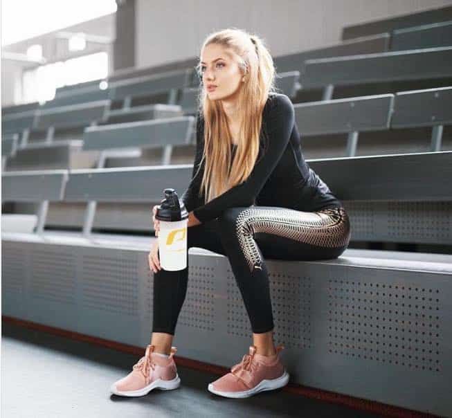 وتظهر عادة العارضة الرياضية شكل جسدها المتناغم للغاية، وذلك نتيجة التدريب الرياضي لساعات عدة، أثناء ركضها على طول الشاطئ.