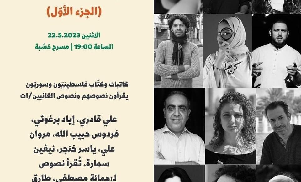 تحت عنوان ( ماراثون النصوص ) يقرأ مجموعة من الكُتّاب والكاتبات من فلسطين وسوريا نصوصهم ونصوص الغائبين والغائبات من المبدعين
