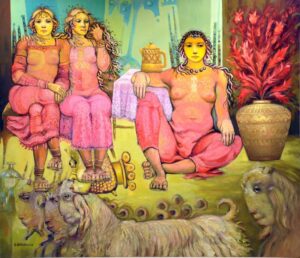 تنطبق لوحات برصوم برصوما على الخلود في حدود الفناء “الخلود كحاشية على التَّاريخ السُّوري القديم”، أو كأنَّها تثبيت المطلق بالمسامير على جسد التَّغير والنِّسبيّة، حينها تغدو الجنَّة مجرّد تثبيت اللحظة الرَّاهنة بكلِّ عنفوانها وفيضها، وفي هذا تتجلَّى ألوان لوحاته واضحةً وهي تحمل ما في الجنَّة من كلِّ ما يخطر على بال بشر، لتجمع في عينٍ واحدةٍ ما رأته كلّ عين، وتصبّ في حديثٍ واحدٍ ما سمعت به كلّ أذن!