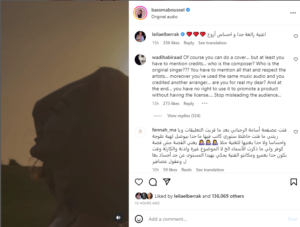 بعدها قام المنتج الموسيقار أسامة الرحباني بتوضيح أسباب تقديمه بلاغات بحق بسمة بوسيل لانتهاكها حقوق الملكية الفكرية، وقال: هي أغنية لهبة طوجي، من ألبوم ومسرحية دون كيشوت من عام ٢٠١١، اي منذ ١٣ عامًا، وليست لبسمة بوسيل التي غنتها من دون حقوق ولا مهنيّة ومن أجل اعلان تجاري ضمنها. لقد اختفت الأخلاق المهنيّة، فهي لم تذكر حتى من هم أصحاب الملكيّة الفكريّة”.