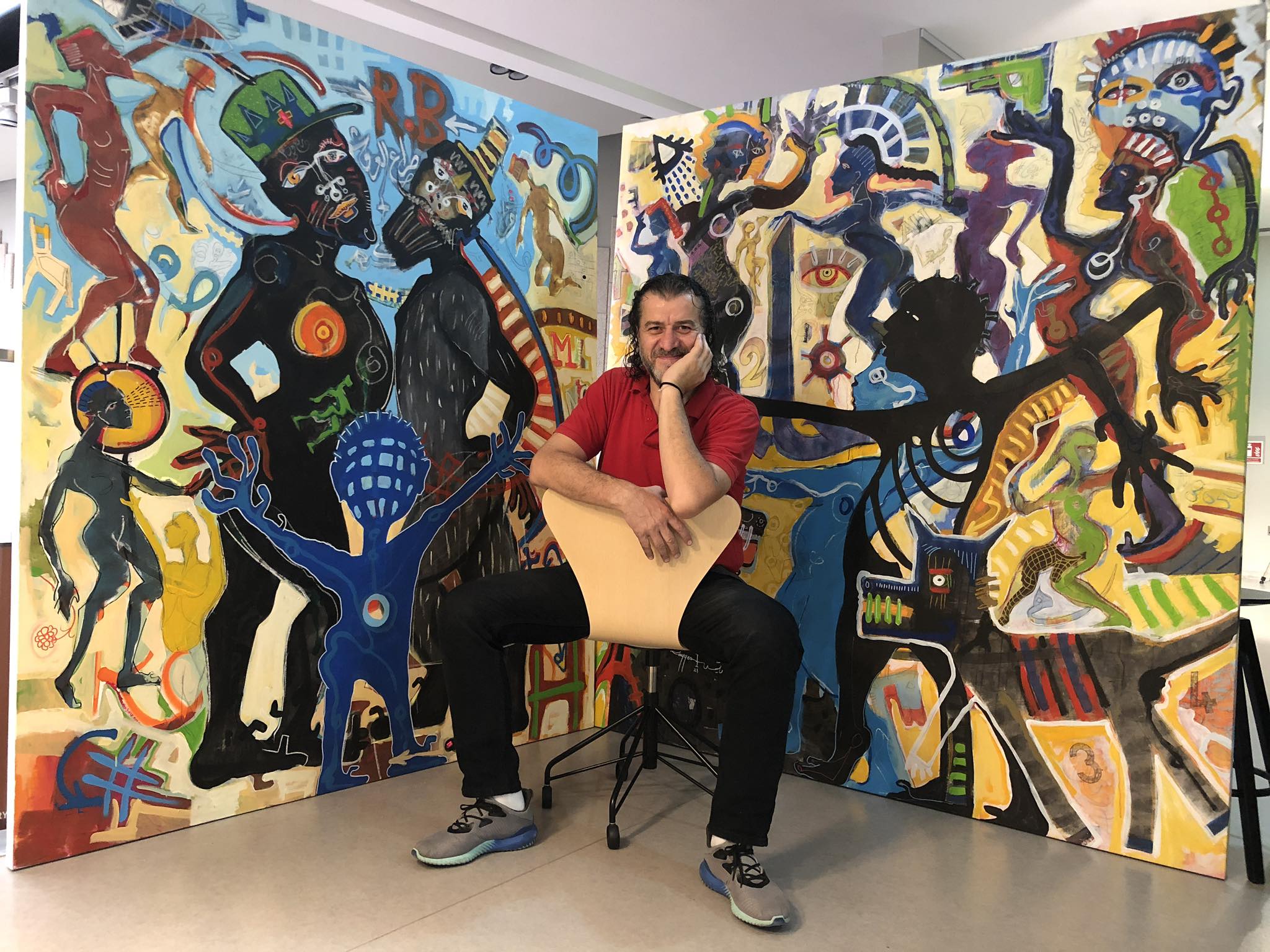 بسيم الريس التشكيلي والكاتب السوري في ضيافة نص خبر، مبدع نشيط يتنقل بين الفنون بكل اقتدار، يكتب السيناريو والسرد ويرسم بعوالم عجائبية وألوان حارة جعلت للوحاته خصوصية فريدة وهوية “المستر واي” الذي لا يكف عن الأسئلة، إلا أنني أنا من يسأله اليوم: