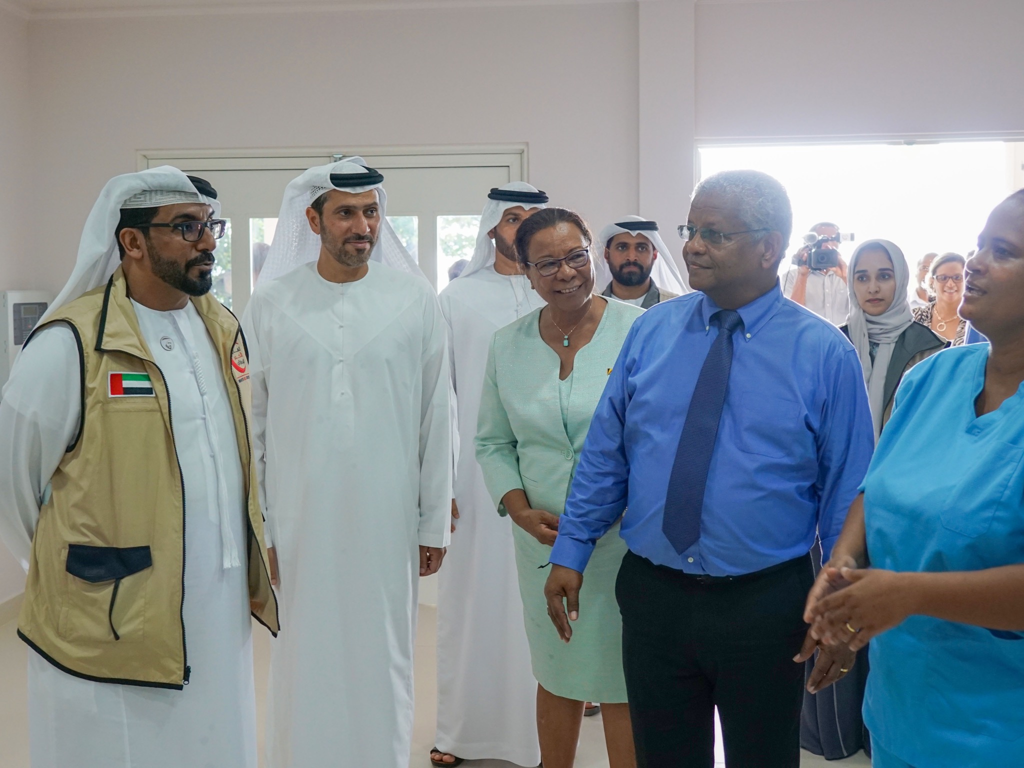 وحضر حفل الافتتاح، حمود عبدالله الجنيبي، أمين عام “هيئة الهلال الأحمر الإماراتي“، وأحمد النيادي “القائم بأعمال سفارة الدولة في فكتوريا“، وبيجي فيدوت “وزيرة الصحة في سيشل“، وسيلفستر راديغوند “وزير الشؤون الخارجية والسياحة في السيشل“، وكبار المسؤولين في وزارة الصحة بالسيشل، و“هيئة الهلال الأحمر الإماراتي“.