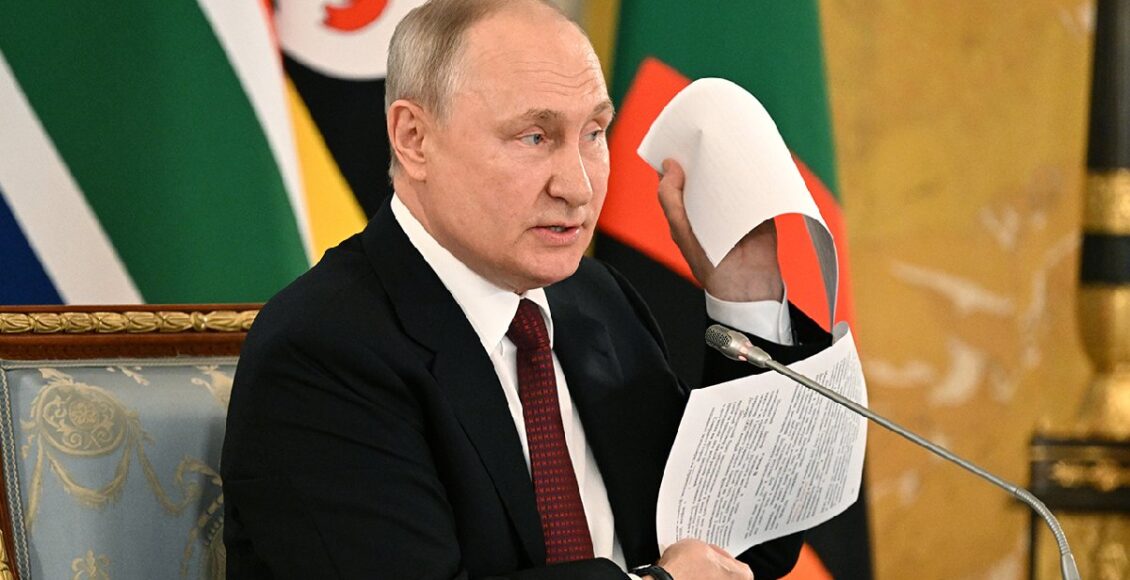 تصدر مقطع فيديو للرئيس الروسي بوتين وهو يظهر ورقة مفاوضات “سرية” تكشف ما دار بين الروس والأوكران في تركيا العام الماضي خلال لقائه أمس السبت، رئيس جنوب إفريقيا سيريل رامابوزا الذي ترأس وفد الوسطاء الأفارقة في سان بطرسبيرغ بشمال غرب روسيا.