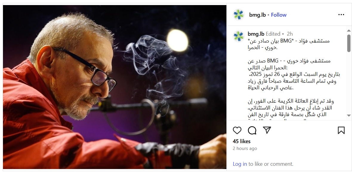 صدر عن BMG – مستشفى فؤاد خوري – الحمرا البيان التالي: