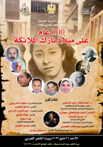 احتفالًا باليوم العربي للشعر الذي أقرته المنظمة العربية للتربية والثقافة والعلوم “الالكسو” يحتفل بيت الشعر العربي بالقاهرة( مركز إبداع الست وسيلة ) فى تمام السابعة من مساء الأحد 21 مايو بمرور مائة عام على ميلاد الشاعرة العراقية الكبيرة نازك الملائكة، يشارك فى الاحتفالية عدد من الشخصيات البارزة في المجال الثقافي والأدبي العربي منهم