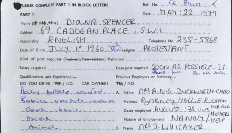 بيع أول عقد عمل للأميرة البريطانية الراحلة ديانا في مزاد علني بمبلغ 10500 دولار، والذي كذبت فيه بشأن عمرها الحقيقي، وذلك وفق ما جاء في مجلة “بيبول” الأميركية.
