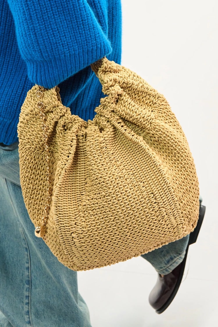 شقّت الحبال والجلود والقشّ و”الرافيا” طريقها إلى موضة صيف 2024، بعدما استخدمها المصّممون لينسجوا منها حقائب تنوّعت بين الكلاسيكيّة الأنيقة والدائريّة و”التوتي” والغريبة بتفاصيلها، ولكن جميعها عكست الإبداع الفريد بجعل الحبال تبدو متداخلة بدقّة متناهية. يتناسب هذا النوع من الحقائب مع الإطلالات النهاريّة ومع رحلات السفر وحفلات الشاطئ، وهو يبدو مثاليًّا مع ملابس الموسم المريحة، مثل تصاميم الفساتين الصيفية الفضفاضة والبناطيل الواسعة. وفي إمكانك إضفاء لمسات مميّزة عليها، من خلال ربط وشاح صيفيّ صغير يتزيّن برسومات حيويّة على مقبضها، أو تثبيت عناصر لافتة عليها، مثل المشابك المستوحاة من أشكال ترمز لعالم البحار.
