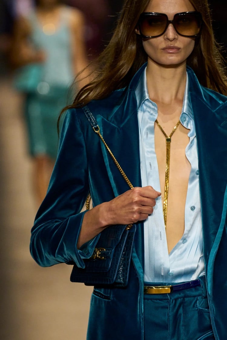 حجزت المجوهرات مكانًا بارزًا لها في عالم تصميم الحقائب، فتألّقت على أجمل التصاميم مضفية عليها لمسات استثنائيّة من الجاذبيّة والفخامة. فقد شعّ بريق التفاصيل الذهبيّة على حقائب “دولتشي أند غابانا”، وكست أحجار الكريستال تلك التي رافقت إطلالات عارضات “ستيلا مكارتني” والتي تدلّت منها شرائط مرصّعة بها أيضًا. أمّا في مجموعة “سكياباريلي”، فقد ثُبِّتَت المجوهرات كما هي على الحقائب، حيث تزيّنت بساعة يد ذهبيّة مثلًا، أو بسلسلة من الحبيبات الذهبيّة، في حين غطّت حقائب “غوتشي” شباك مرصّعة بالأحجار اللامعة. ومع هذه الخيارات وأكثر، تستطيعين التباهي بإطلالة فاخرة جدًّا، حتّى ولو كانت الملابس التي تتألّقين بها بتصاميم ناعمة.