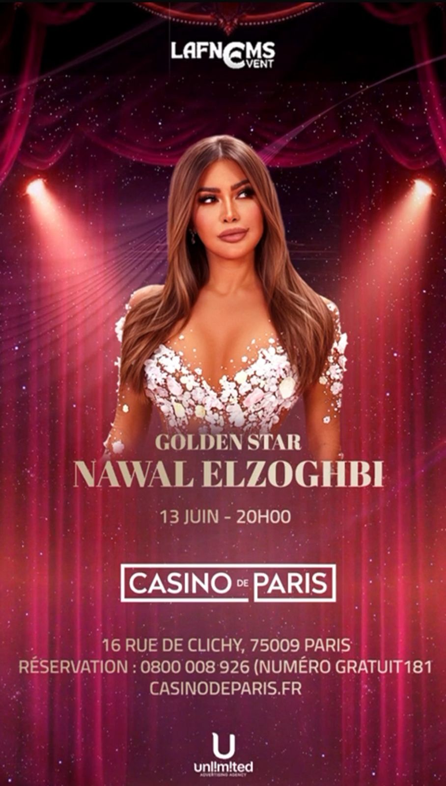 قبل موعده بيومين فقط، أعلنت شركة “لافنيمز”، الجهة المنظمة لحفل الفنانة نوال الزغبي في قاعة كازينو دو باري – باريس، عن تأجيل الحفل الذي كان من المقرر إقامته يوم الجمعة 13 حزيران/يونيو 2025، إلى موعد جديد سيتم تحديده والإعلان عنه لاحقًا.