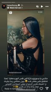 وهنأ تامر، بسمة بوسيل على برومو أغنيتها الجديدة، عبر “إنستغرام”، وتمنى أن تُحقق أغنيتها نجاحاً بارزاً، بقوله: “ماشي يا بسوم، نازلة في نفس اليوم معايا إحنا هنقطع على بعض كدة، بهزر معاكي، ربنا يكرمك وأغنيتك تكسر الدنيا وتبقى أنجح من أغنيتي، من قلبي”.