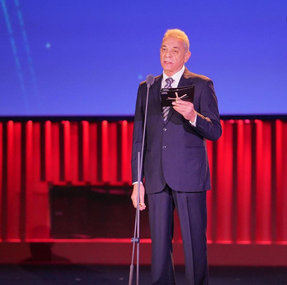 ليصعد المخرج المصري وسط تصفيق الحضور لتلقي جائزة الإنجاز الإبداعي، وفي كلمته أكد على أن تسليم يسرا الجائزة له هو شريف كبير، ووجه الشكر إليها على دعمها.