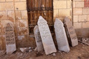 في غرفته المجاورة لغرفة الدفن حيث عٌلق تلفاز على الحائط قرب سريرين متهالكين ومروحة صدئة، قال العربي “أبلغونا أنهم سينقلون الجثث ويهدمون المقبرة. أصحاب المقبرة سيستلمون مقبرة بديلة وأنا لا”.