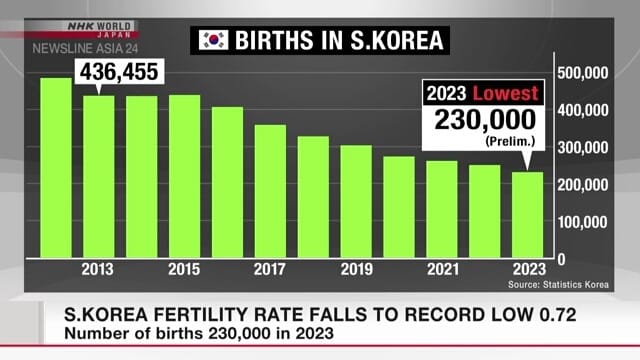 فقد أعلنت هيئة الإحصاء الكورية يوم الأربعاء أن الرقم الذي يمثل متوسط عدد الأطفال المولودين لكل امرأة قد تراجع مقارنة بـ 0.78 المسجل عام 2022. وسجل المعدل انخفاضات قياسية جديدة على مدى ثمانية أعوام متتالية.
