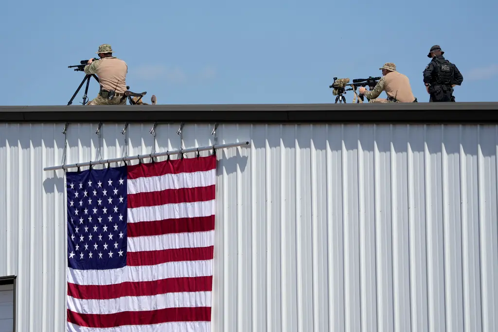 كما انتشر القناصة على أسطح المباني المجاورة بشكل واضح، لتأمين الحدث الذي شارك فيه أيضاً المرشح لمنصب نائب الرئيس، جاي فانس.
