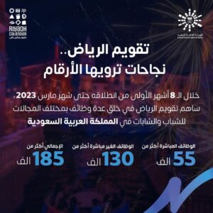 أعلن المستشار تركي آل الشيخ رئيس مجلس إدارة الهيئة العامة للترفيه عبر حسابه الرسمي على “تويتر” أن تقويم الرياض قد وفر أكثر من 185 ألف وظيفة مباشرة وغير مباشرة للشباب السعودي خلال الـ 8 أشهر الأولى متوقعا المزيد خلال الفترة القادمة.