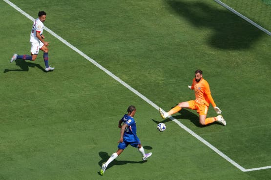 وفي الدقيقة 30 أعاد بالمر الكرّة وسجل هدفاً مماثلاً من الجهة والمسافة ذاتها عزز به تقدم فريقه وهو هدفه الثالث في البطولة وكلها في أدوار الإقصاء. وتزعزعت ثقة لاعبي لويس إنريكه وسط مقابل معنويات لاعبي ماريسكا العالية فأهدر الفرنسيون وتألق الحارس روبرت سانشيز للمرة الثالثة في الذود عن مرماه قبل أن يصنع بالمر الهدف الثالث لجواو بيدرو الذي لعب كرة (لوب) فوق دوناروما (43) مسجلاً هدفه الثالث أيضاً في البطولة ليقضي على أحلام ديمبلي ورفاقه بالعودة أقله في الشوط الأول.