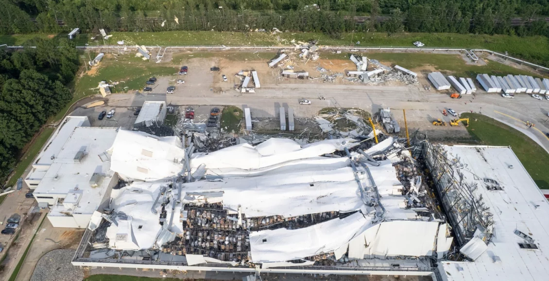 وأدى إعصار EF3 إلى تمزيق سقف مصنع Pfizer المسؤول عن إنتاج ما يقرب من 25 ٪ من الأدوية المعقمة القابلة للحقن التي تنتجها شركة الأدوية الأمريكية العملاقة المستخدمة في المستشفيات الأمريكية ، وفقًا لشركة الأدوية الأمريكية.