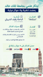ويعد ابتكار الباحثة رفيف عائض الشهراني أحد المشاريع المحتضنة بوكالة جامعة الملك خالد للأعمال والشراكة المجتمعية ممثلة بمركز ريادة الأعمال، حيث سبق أن حقق الابتكار أربع جوائز أخرى من تايوان، ورومانيا، وهونغ كونغ، وتايلاند.