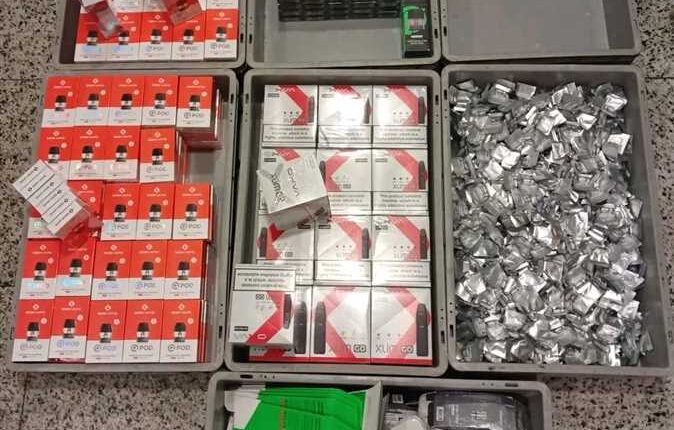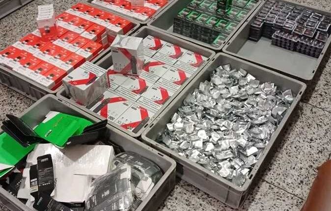 أفشل رجال الجمارك بمطار برج العرب الدولي اليوم الإثنين، محاولة تهريب عدد من السجائر الإلكترونية ومستلزماتها بالمخالفة لقانون مزاولة مهنة الصيدلة 127 لسنة 1955 وتعديلاته وقانون الجمارك رقم 207 لسنة 2020 ولائحته التنفيذية وقانون الاستيراد والتصدير رقم 118 لسنه 1975 وغيرها من القوانين واللوائح المنظمة لذلك.