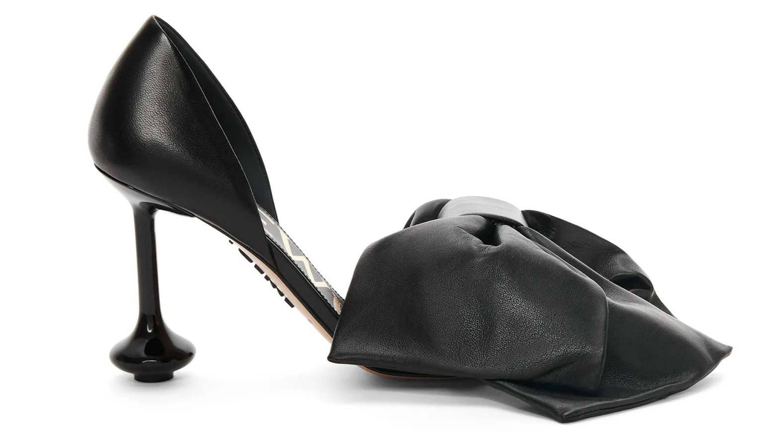 بالإضافة إلى الأحذية ذات الكعب العالي، تتميّز مجموعة Loewe الخريفية أيضاً بنفس اللمسات الكبيرة. وعلى غرار الكعب العالي، تمّ صنع نسخة بقيمة 1150 دولاراً من الجلد الأسود الناعم، كما تمّ صنع النمط نفسه من المخمل المذكور مقابل 990 دولاراً.