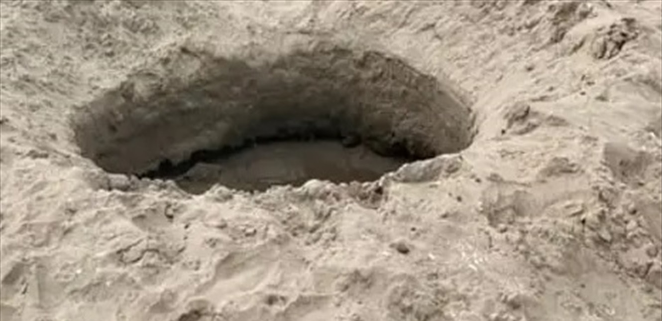 لكن لسوء حظه تبين أن “الحدث الكوني” هذا ما هو إلا عبارة عن حفرة تافهة أحدثها شابان في الرمال للتسلية باستخدام دلو ومجارف خلال موجة الحر يوم السبت الماضي، أثناء تواجدهما على الشاطئ.