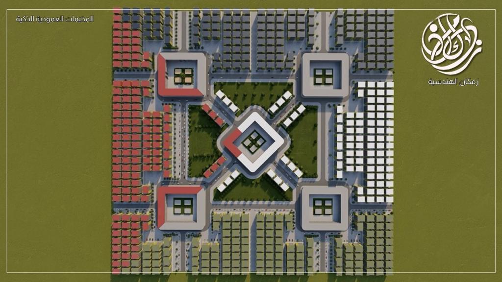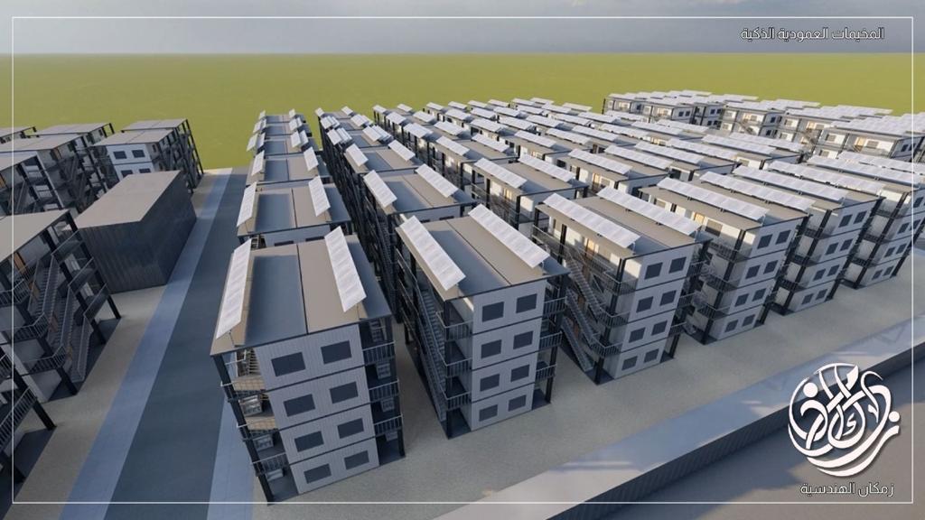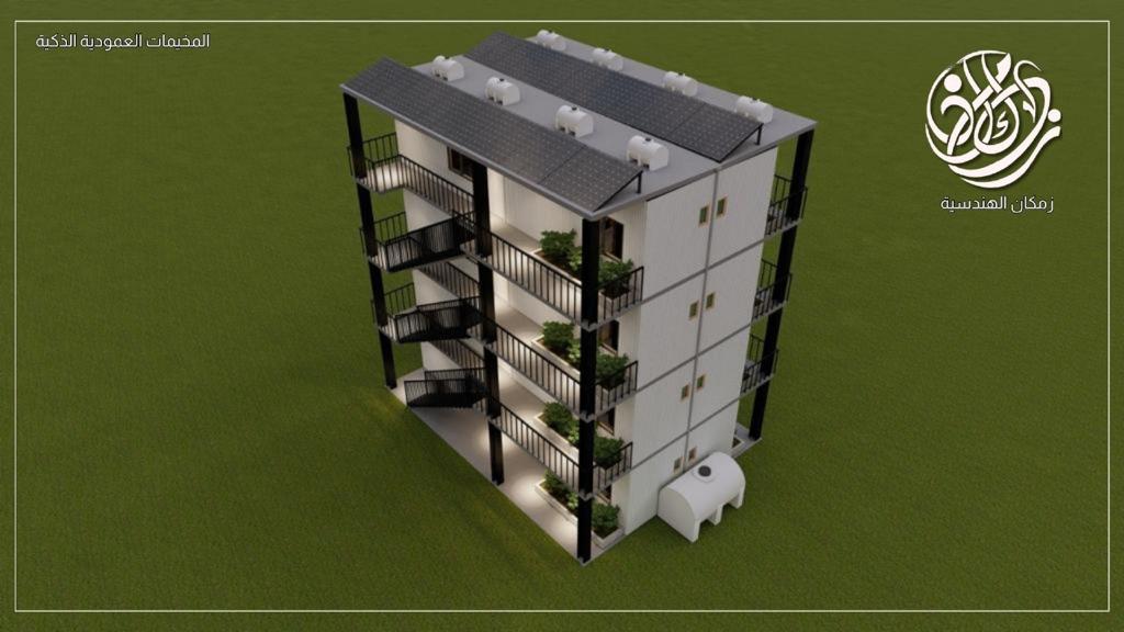 فكرة المخيمات العمودية هي فكرة انبثقت في ظلّ هذه الظروف لتوفير مأوى كريم يحفظ كرامة أهل غزة ويوفر احتياجاتهم الأساسية خاصة وأنّ الشتاء يطرق الأبواب. المخيمات تتضمن وحدات سكنية مجهزة مسبقاً ويمكن تركيبها فوق بعضها البعض وتشمل أماكن مشتركة للخدمات العامة كغرف غسيل الملابس وكافتيريات تناول الطعام ومراكز صحية تقوم على متابعة علاج الجرحى والمصابين. الفكرة مقدمة من شركة زمكان الهندسية وموجهة لكل الجهات المهتمة بإيجاد حلول إنسانية سريعة على الأرض لإسناد أهلنا في غزة.