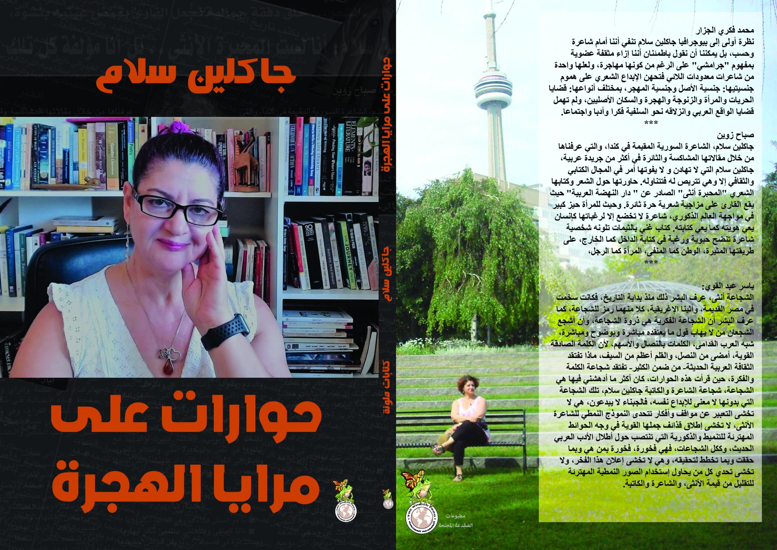 صدر كتاب جديد لجاكلين سلام في الصحافة والبحث والنقد. تحت عنوان: حوارات على مرايا الهجرة للصحفية والشاعرة السورية الكندية جاكلين سلام حيث يتوفر الكتاب بصيغة ورقية وألكترونية.