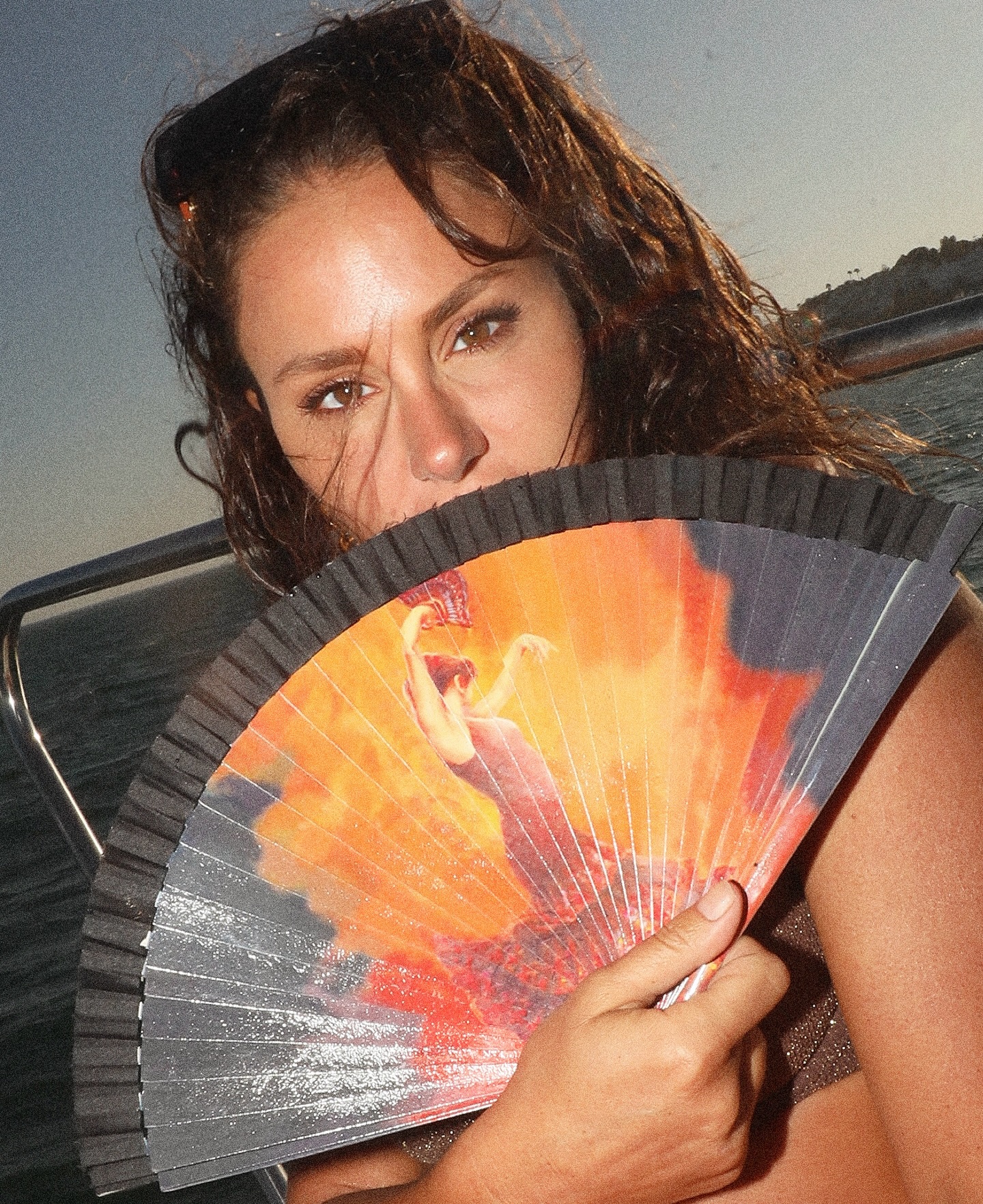 على متن يخت فاخر في ماربيا، اختارت ديمة قندلفت تنورة كروشيه ماكسي برتقاليّة اللون تنحت قوامها ونسّقتها مع توب قصيرة تكشف بطنها باللون البرونزي البرّاق. وأكملت إطلالتها مع نظّارة شمسيّة فاخرة 30 Montaigne M1U Sunglasses من Dior، وأكسسوارات عصريّة، وقرطي أذنين من الكروشيه. كذلك، حملت بيدها مروحة مطبّعة برسوم من وحي التراث الإسباني.