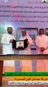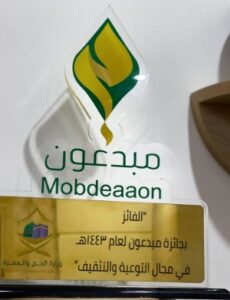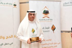 ضمن فعاليات حفل الإبداع والتميز الذي أقامته وزارة الحج والعمرة تحت شعار:”مبدعون” لتكريم المبادرات الفائزة والشركات المتميزة في خدمة ضيوف الرحمن،كرم معالي وزير الحج والعمرة الدكتور توفيق بن فوزان الربيعة،أ.د.مشعل بن سليمان العدواني،رئيس مجلس إدارة شركة”مشاعل النور لخدمات حجاج الداخل والمعتمرين” لحصولها على جائزة الإبداع في مجال توعية وتثقيف الحجاج بمشروع التحول البرامجي باستخدام التقنية،كما تم ترشيح سفير الإبداع في شركات الحج والعمرة،ومن ضمنها شركة مشاعل النور،وذلك للمساهمة في تطوير الحلول الإبداعية وتمكينها،ونشر ثقافة الابداع والابتكار،بالإضافة إلى تعزيز التعاون والتواصل المتبادل بين الوزارة والشركات التابعة لها.