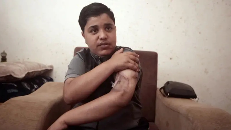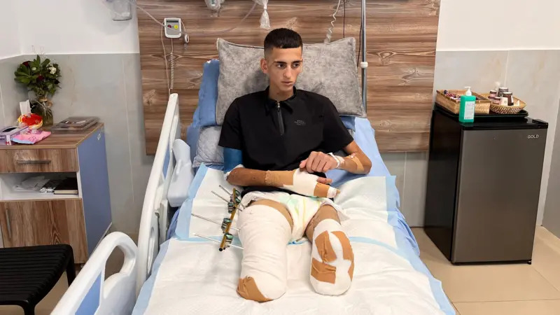 كان عمر أحمد 16 عاما في ذلك الوقت. اضطر الأطباء لبتر إحدى ساقيه، والأخرى مدعومة الآن بألواح معدنية.