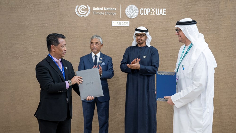 شهد صاحب السمو الشيخ محمد بن زايد آل نهيان، رئيس دولة الإمارات العربية المتحدة، وجلالة السلطان عبدالله رعاية الدين المصطفى بالله شاه، ملك ماليزيا، توقيع اتفاقية بين شركة “أبوظبي لطاقة المستقبل (مصدر)”، و”هيئة تنمية الاستثمار الماليزية”، لوضع خريطة طريق لتطوير مشاريع طاقة نظيفة بقدرة 10 جيجاواط في ماليزيا، تشمل محطات طاقة شمسية أرضية وعلى الأسطح ومشاريع طاقة شمسية عائمة وطاقة رياح برية وأنظمة بطاريات تخزين الطاقة.