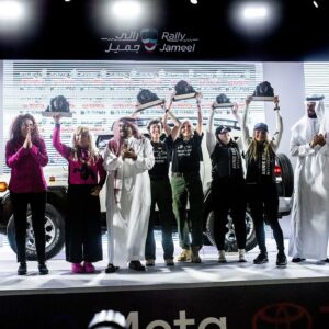 [جدة – المملكة العربية السعودية، 13 مارس 2023] – بعد خمسة أيام من المنافسات القوية والتنظيم الناجح، اختتم رالي جميل، الرالي الملاحي العالمي الاستثنائي الذي يتم تنظيمه حصرياً للسيدات في المنطقة. ووصلت جميع المشاركات البالغ عددهن 82 متسابقة إلى القصيم التي تمثل المرحلة الأخيرة من السباق لمسافة 1,600 كيلومتر تقريبًا. وفازت البولندية إولينا شلوباوسكا برفقة مساعدتها الألمانية هانا ريهل من فريق ساندستورم إكسبرس على متن تويوتا FJ Cruiser بالمركز الأول في النسخة الثانية من الرالي.