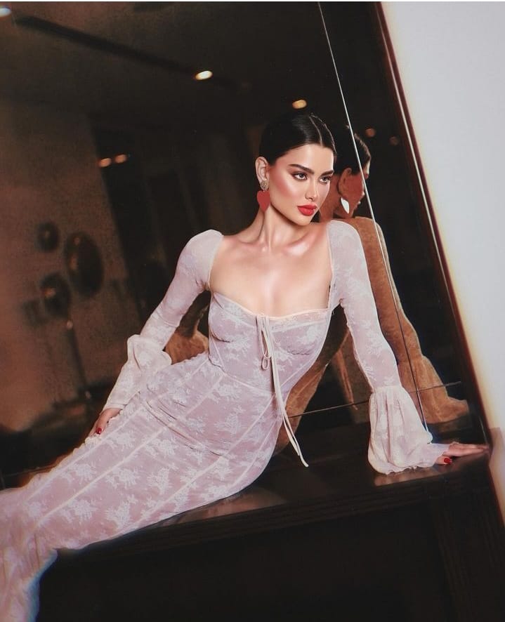 ثوب كلاسيكي بقريحة رومانسية. تم تفصيل الفستان بشكل جميل من الدانتيل المنقط الجميل مع حواف من الساتان الناعم، كما تم دعمه بشبكة قوية لشد الجسم بلون القهوة بالحليب لتخفيف الشفافية. بقصة ثوب الحورية.