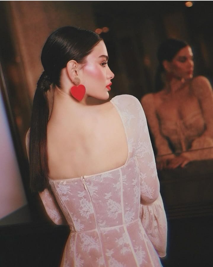 تممت روان بن حسين إطلالتا بالمكياج الرائع مع احمر الشفاه الحمراء بلونها القوي. فجعلت حضورها أكثر ضجيجاً. مع تسريحة شعر مضموم إلى الخلف بعقدة جميلة وأنيقة واعتمدت أقراط حمراء تتناسب مع احمر الشفاه. وزادت تورد الخدود مع بلاش ساطع وردي.