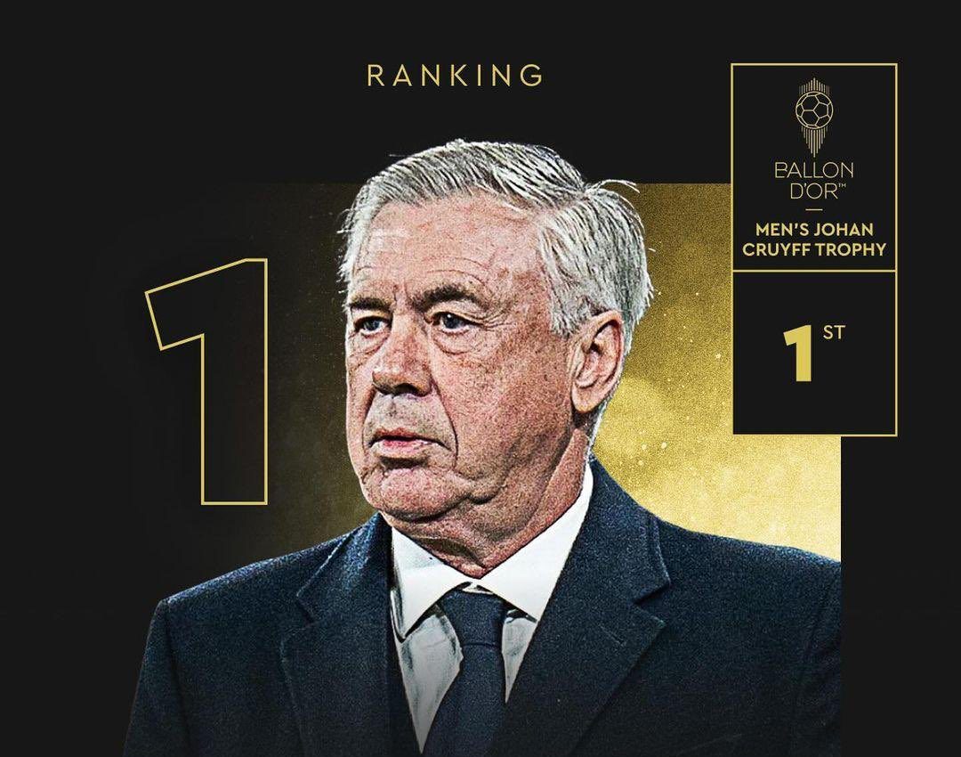 ونال كارلو أنشيلوتي مدرب ريال مدريد بجائزة أفضل مدرب في العالم إثر قيادته فريقه إلى ثنائية الدوري ودوري أبطال أوروبا الموسم الماضي، بالإضافة إلى كأس السوبر الأوروبية مطلع العام الجاري.