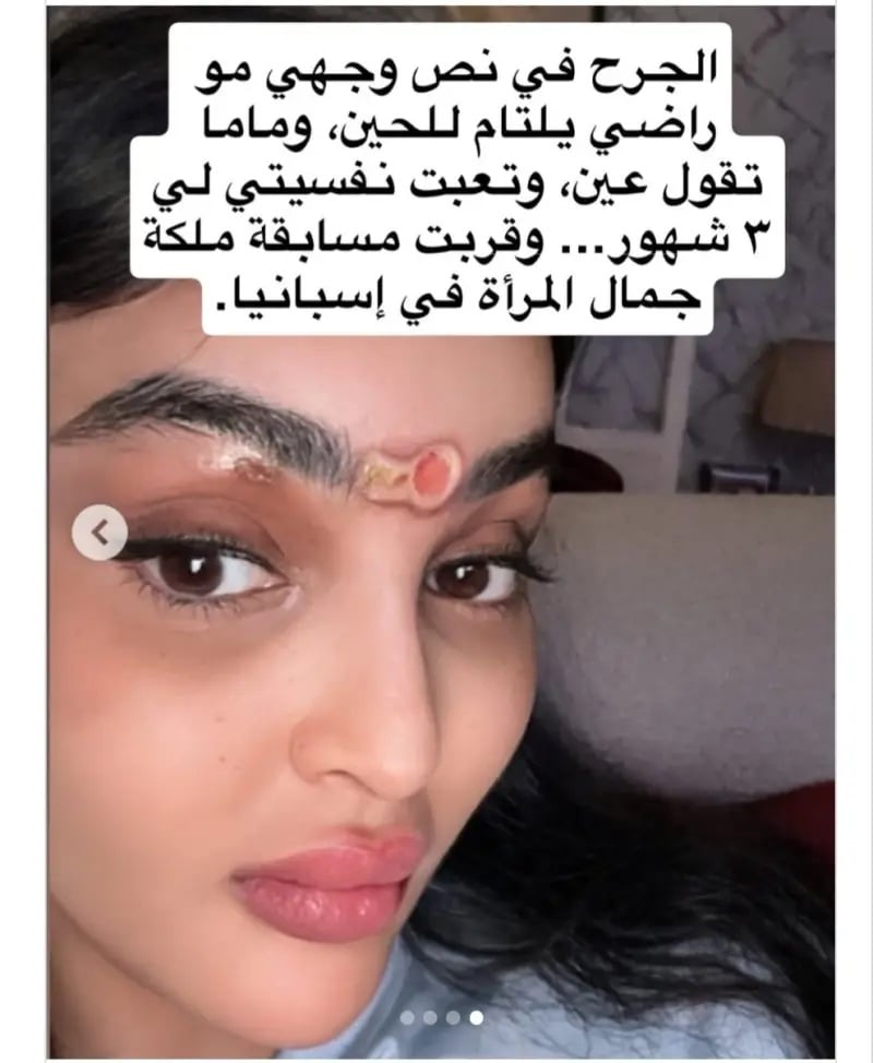 وكانت القحطاني قد فاجأت الجميع الأسبوع الماضي بصورها بتيشرت نادي المنتخب البرازيلي، وقد وضعت حاجب أبيض بين حاجبيها، وهو ما اعتبره البعض حينها بأنه اكسسوار أو صيحة جمالية جديدة، ليتبين بعدها بأنها ضمادة طبية لإخفاء الجرح الذي لم تكشف عن سببه، ولكن اكتفت بالتعليق على الصورة قائلة: “أنا استحملت اللي صار لي، وجمّلت الوضع قد ما أقدر، بس الصدق؟ مو سهل أبداً على أي بنت تتحمل تشوّه بوجهها… الوجه مرايتنا، أول شي الناس تشوفه، وأقرب شي لنفسنا”.