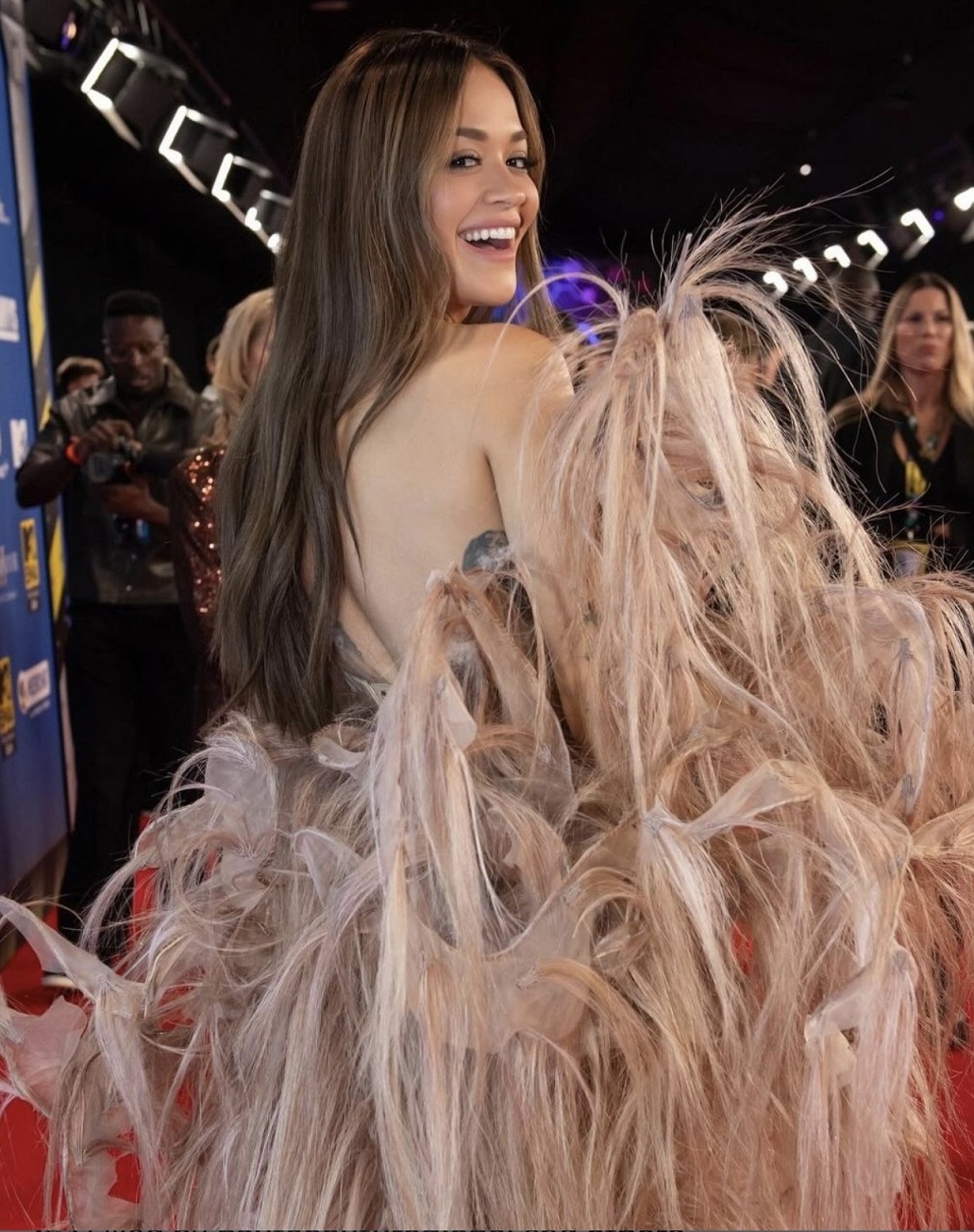 خطفت ريتا أورا الأنظار خلال تقديمها حفل جوائز الموسيقى الأوروبية “EMA“. تألقت بفستان مبتكر يعد من أجمل الفساتين في الحفل.