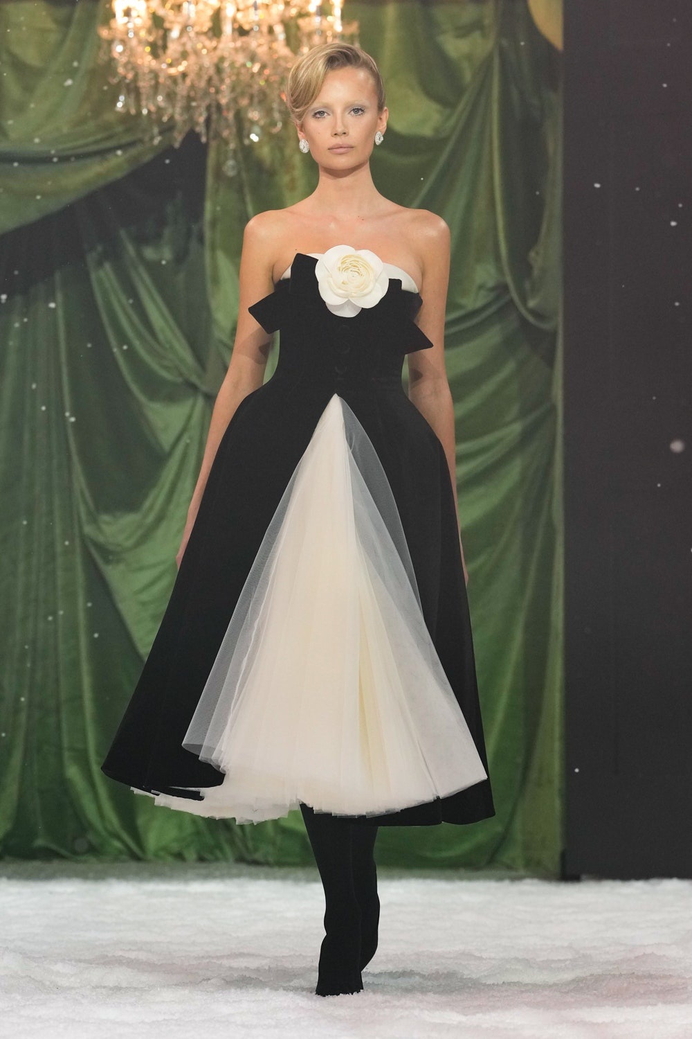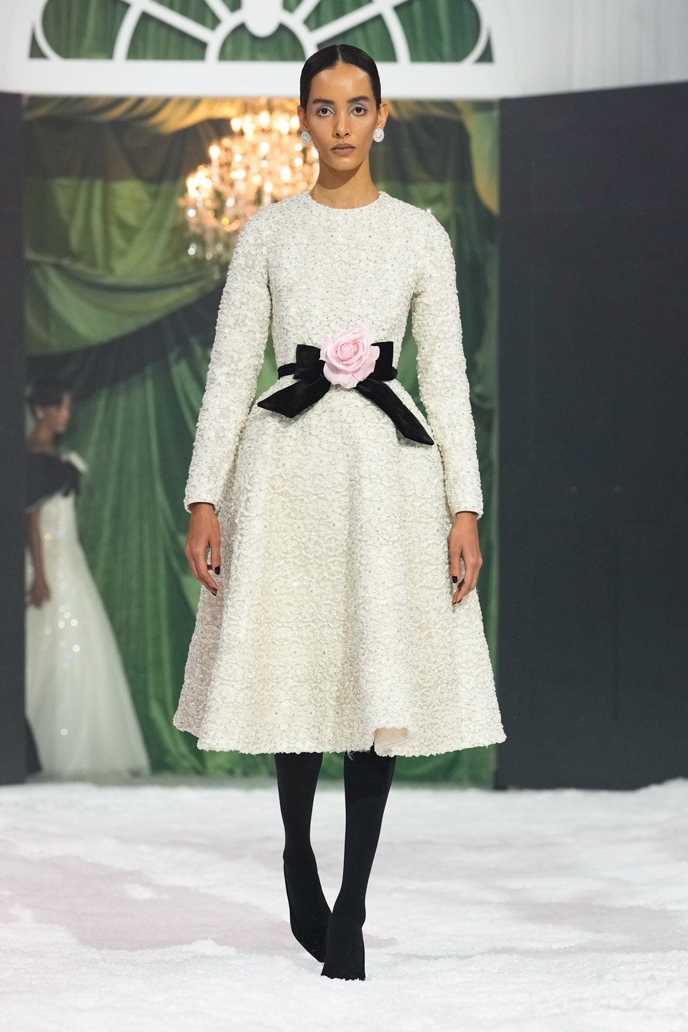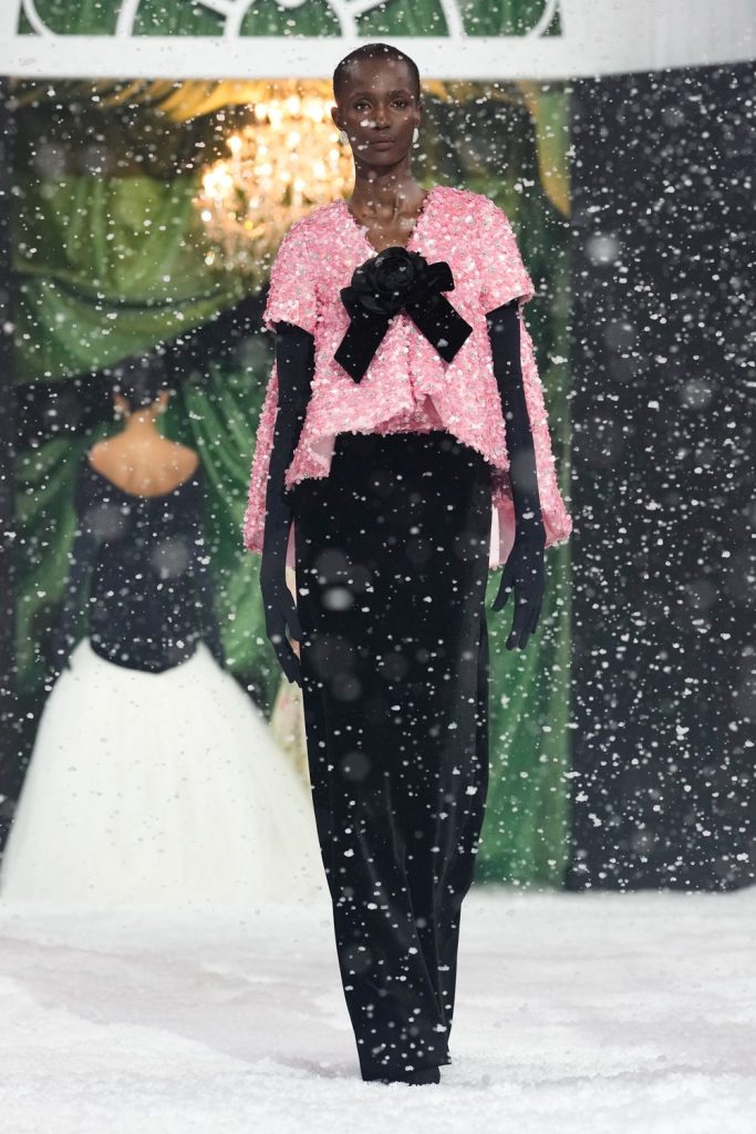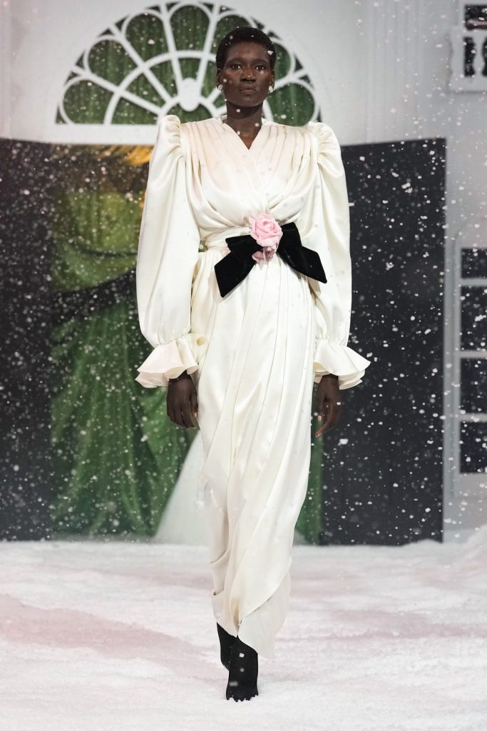 تحولت قاعة العرض إلى مشهد ثلجي ، مكتملة بواجهة تحمل اسم كوين ، وبوابات من الحديد المطاوع ، ومصابيح شوارع متوهجة. عندما تساقط الثلج برفق من السقف ، ملأت الأوتار الكلاسيكية الهواء ، مما مهد الطريق لمسيرة من الحرير الفاخر والوسائد والكشكشة. أثار الجو كرة ثلجية عتيقة ، مما يلخص بشكل مثالي شعور الحنين إلى المجموعة.