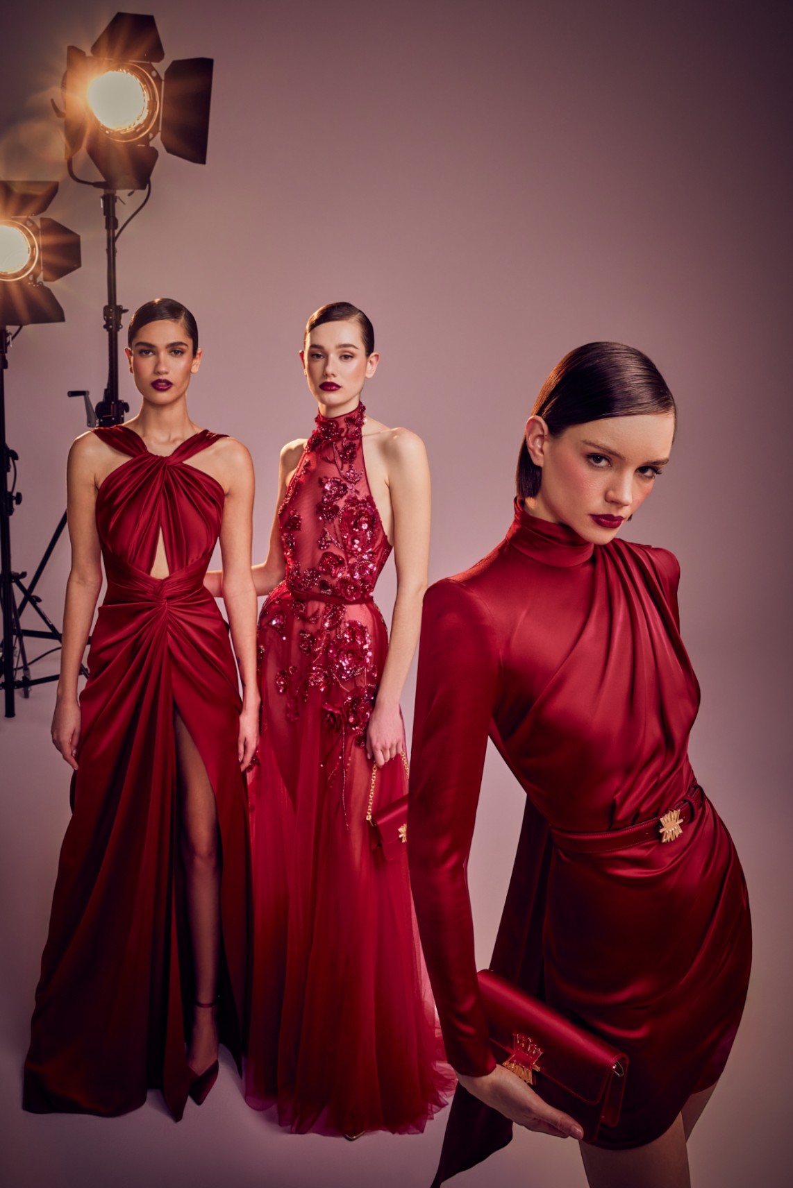 يرسم المصمم اللوحة نفسها باللونين الأحمر والأسود، ولكن أيضًا باللون الأبيض والأزرق الفولاذي والليموني والكمان. متألق، فهو يحتفل بأنوثة حريصة على أن يتم ملاحظتها حتى عند الشفق.