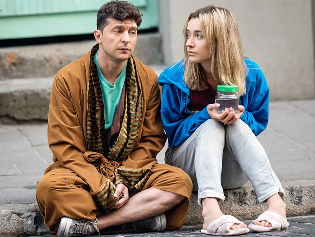 لكن مثل هذه الإشارات المباشرة إلى الرئيس الروسي كانت نادرة في الكوميديا المبكرة لزيلينسكي. في كثير من الأحيان كان يمزح حول العلاقة المشحونة بين أوكرانيا وروسيا، كما هو الحال في أشهر رسوماته من عام 2001، والتي تم أداؤها خلال بطولة KVN الأوكرانية. يحمل الفيلم عنوان “رجل ولد ليرقص”، ويلعب فيه زيلينسكي دور روسي لا يستطيع التوقف عن الرقص وهو يحكي لأوكراني عن حياته. السيناريو لطيف والفكاهة الأحداث. يمسك زيلينسكي بمنشعبه مثل مايكل جاكسون ويستعير روتين التمثيل الصامت في الصندوق من بيب المهرج.