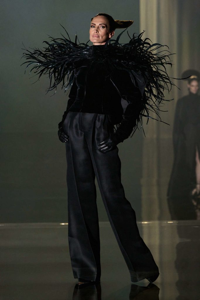 الكثير من الحب والإلهام على ساحة العرض, كل شيء رقيق منسل ريش يتطاير قبعات من رؤوس حرير يلف كطيات عجائبية. أثواب تتهدل على اشكال وطرق غير اعتيادية لكن في كل التفصيل الجمال والحرفية صوتها عالي. انها عرض الافتتان والرقي والمخيلة الخصبة والمشاعر المهروقة فوق بلاط وقماش.