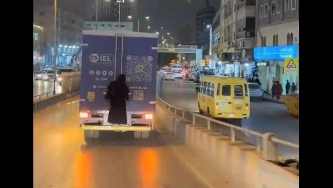 خلال الساعات الماضية، ضجت مواقع التواصل الاجتماعي في السعودية بفيديو غريب يظهر امرأة متعلقة على الأبواب الخلفية لسيارة نقل أثناء سيرها في حي البطحاء الشهير بالرياض.