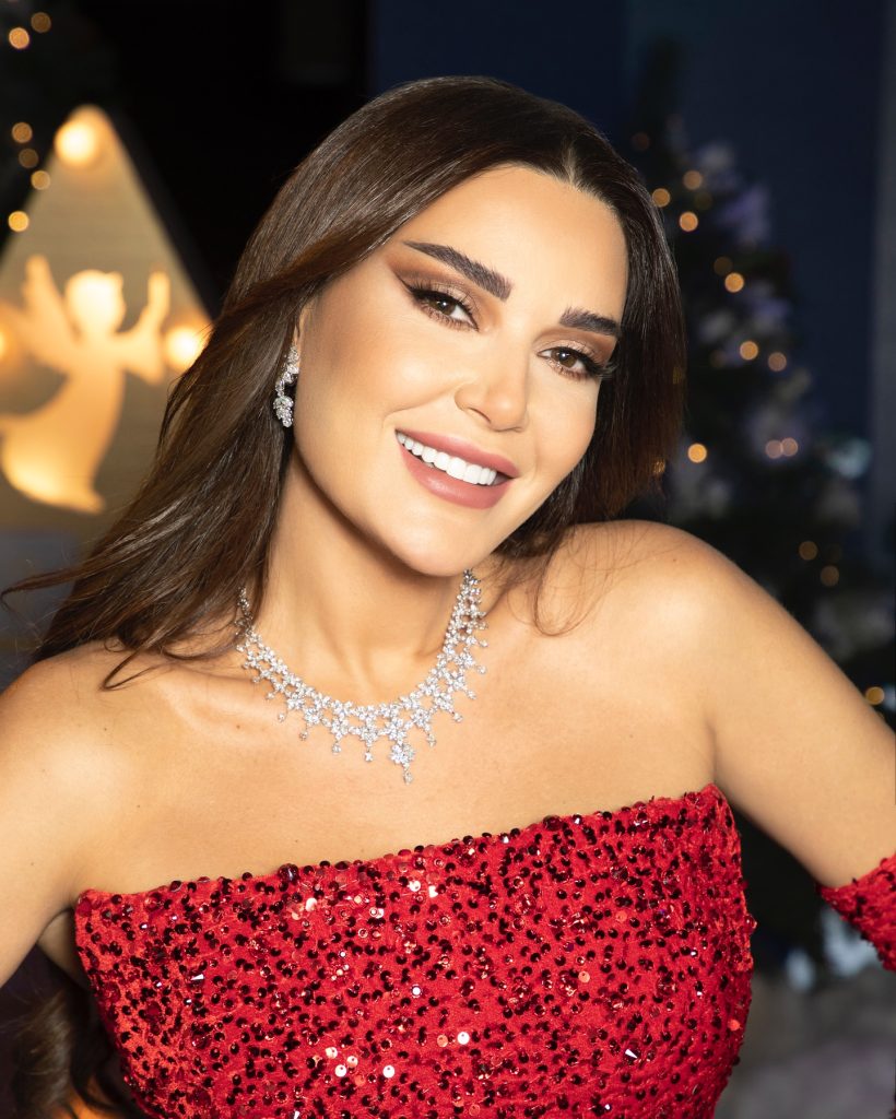 سيرين عبد النور بثوب أحمر براق جسدت رمزية الميلاد. جلسة تصوير شاءتها عبد النور لحظة أمل وحب ترسم الابتسامة وتدعو إلى التفاؤل.