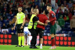 وعلى الرغم من أن مقتحمي الملعب كانوا يريدون فقط التقاط صور شخصية مع الأسطورة رونالدو، إلا أن الخطة الأمنية للبطولة تهدف أيضا لحماية اللاعبين من الأذى.