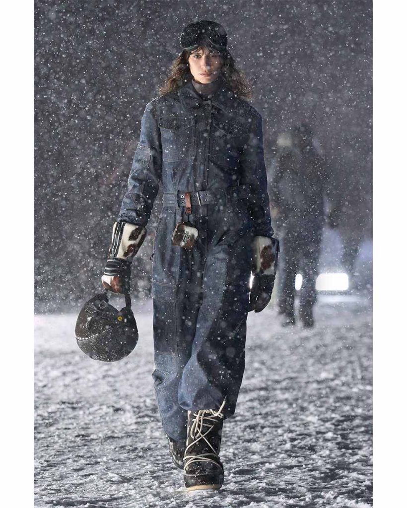 أقام Moncler Grenoble عرض أزياء على منصة منصوبة على ارتفاع 2008 فوق سطح البحر في منطقة كورشفيل في منطقة جبال الالب الفرنسية المشهورة بالتزلج. في الهواء الطلق وسط العواصف الثلجية.
